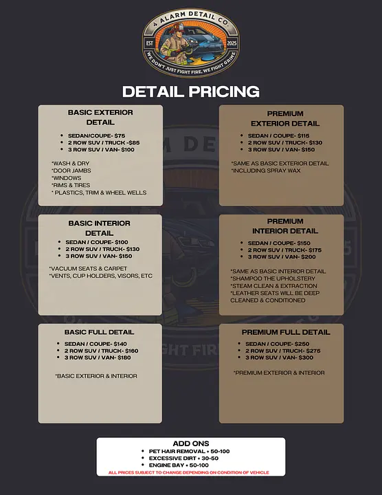 Pricing for detail services.